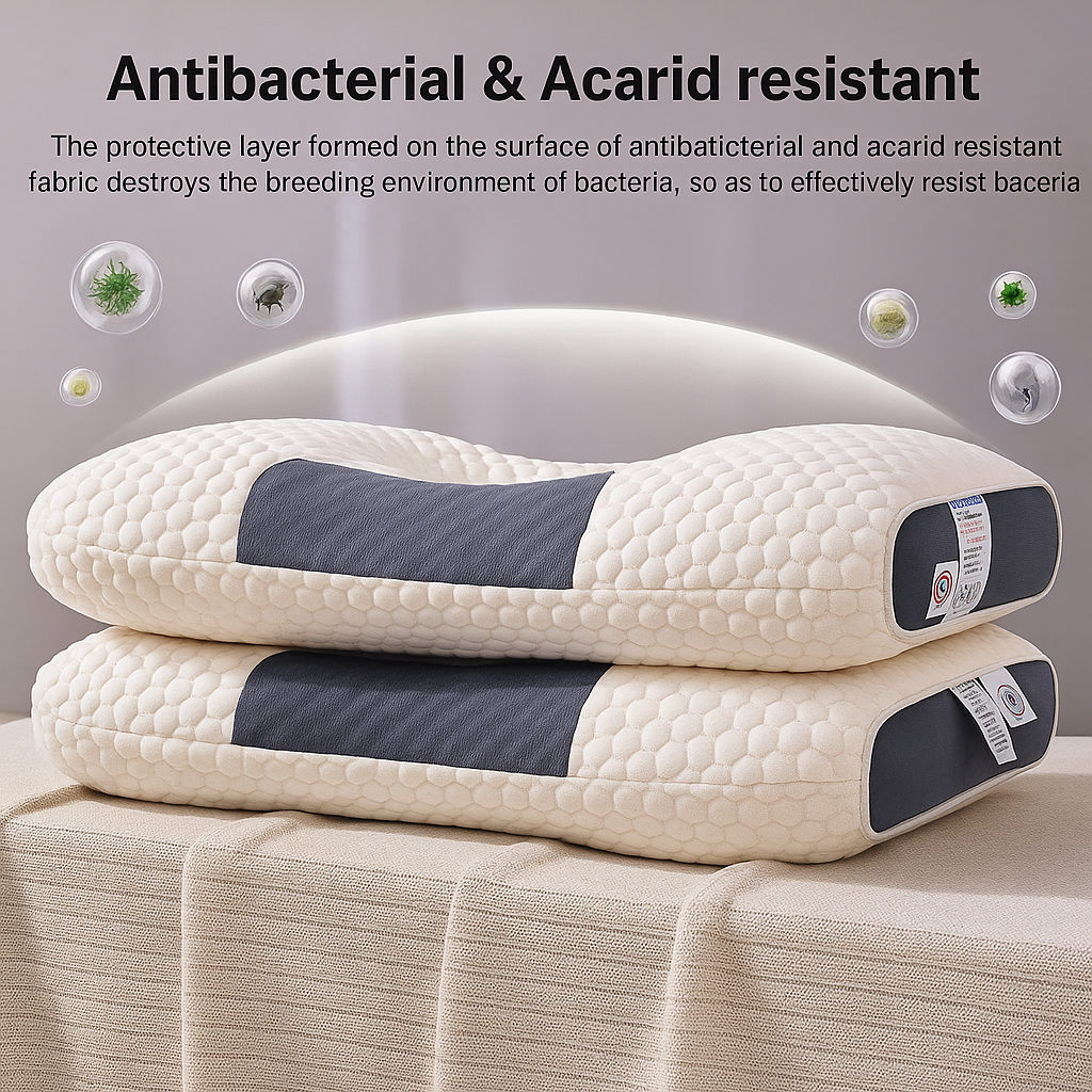 - 3-zone cervical support: Side Sleep Area • Neck Relief Zone • Back Sleep Cradle